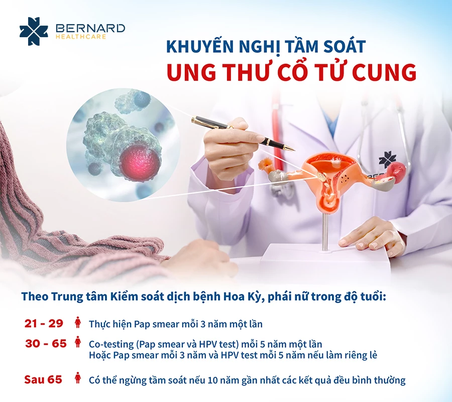 Các chuyên gia khuyến nghị phụ nữ nên thực hiện Pap smear bắt đầu từ 21 tuổi và lặp lại 3 năm/lần nếu kết quả bình thường. Từ 30 - 65 tuổi, nên kết hợp Pap smear và HPV test (co-testing) mỗi 5 năm/lần hoặc tiếp tục Pap smear riêng mỗi 3 năm. Việc tầm soát định kỳ này giúp phát hiện sớm tế bào bất thường hoặc virus HPV gây ung thư cổ tử cung, từ đó bảo vệ sức khỏe phụ khoa toàn diện.