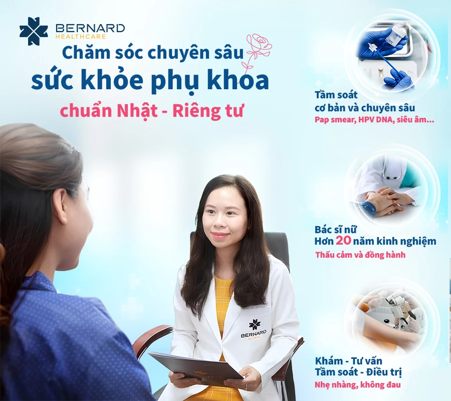 Đặt lịch chăm sóc sức khỏe phụ khoa chuyên sâu chuẩn Nhật tại Bernard qua hotline 028 3535 2468 hoặc liên hệ tư vấn TẠI ĐÂY.
