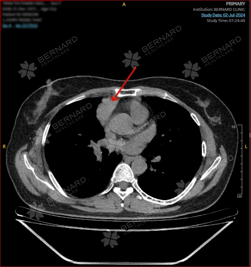 Từ đây, Bác sĩ Bernard nghĩ nhiều đến U tuyến ức bao gồm U Thymoma, không loại trừ U Lymphoma.