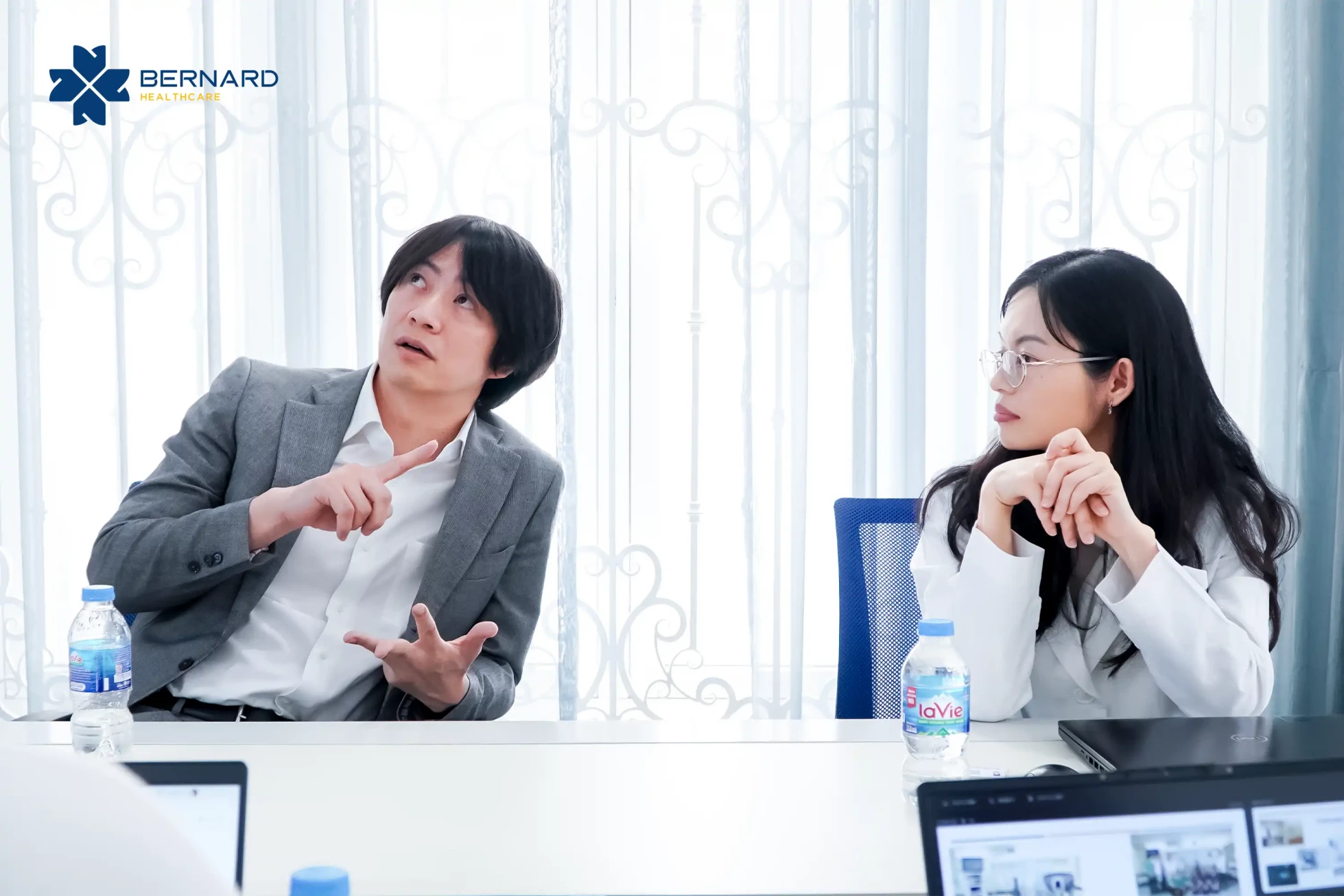 Tiếp đón và làm việc với đoàn NTT, về phía Bernard Healthcare có sự tham gia của TS. BS. Nguyễn Thị Thu Thảo - Trợ lý Ban Giám đốc cùng BS. Bùi Lê Nhật Tiên - Chuyên khoa Y học Dự phòng, Khoa Nội tổng quát Bernard Healthcare.