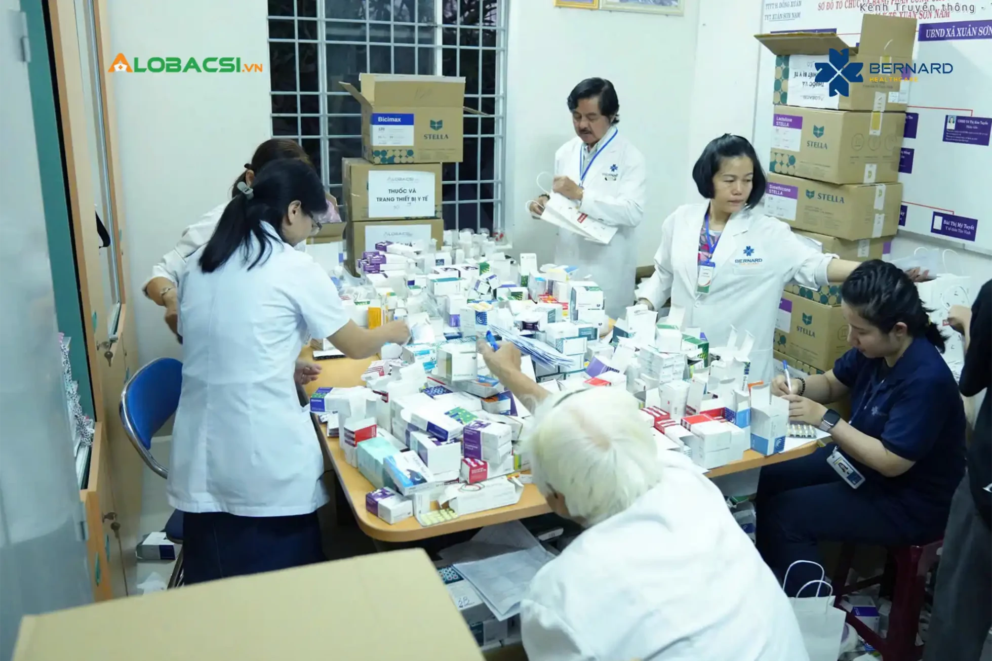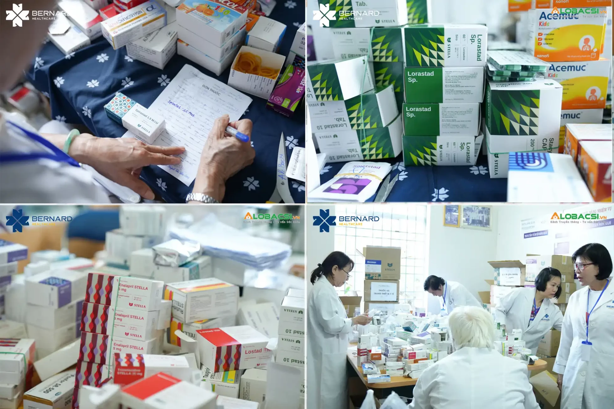 Những ngày trước chuyến đi, đội ngũ Bernard Healthcare đã phối hợp cùng AloBacsi chuẩn bị lượng lớn thuốc, quà, thiết bị y tế.