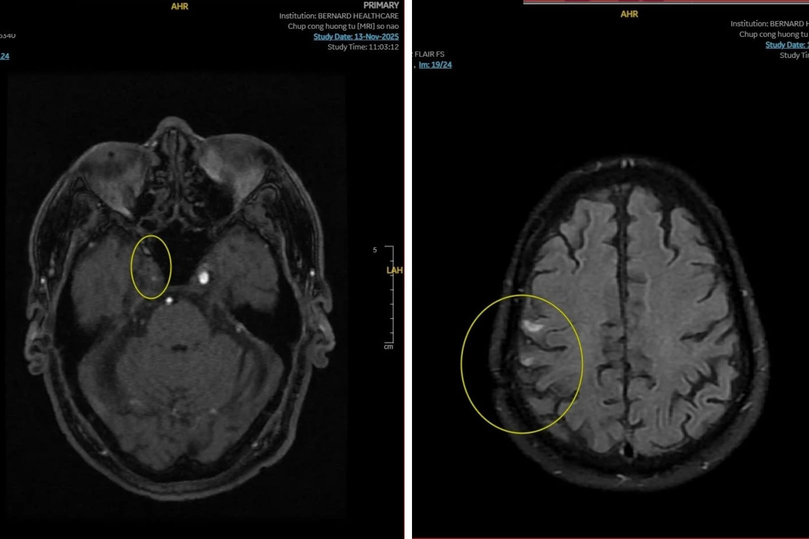 Dù chỉ mong muốn tầm soát nguy cơ ung thư - đột quỵ, một khách hàng đã bất ngờ được phát hiện tắc động mạch cảnh trong phải và bệnh lý mạch máu nhỏ giai đoạn 2 nhờ kỹ thuật MRI não không tiêm thuốc cản từ tại Bernard. Đây là những tổn thương nguy hiểm, thường âm thầm tiến triển và dễ bị bỏ sót nếu không được đánh giá bằng các phương pháp chẩn đoán hình ảnh chuyên sâu.