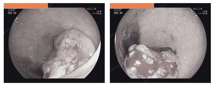 Đáng chú ý nhất là một khối u sùi ở trực tràng, cách bờ hậu môn 10–12cm, kích thước khoảng 3cm, lan theo chu vi lòng trực tràng, niêm mạc bở, dễ chảy máu – đặc điểm gợi ý nguy cơ ác tính cao.