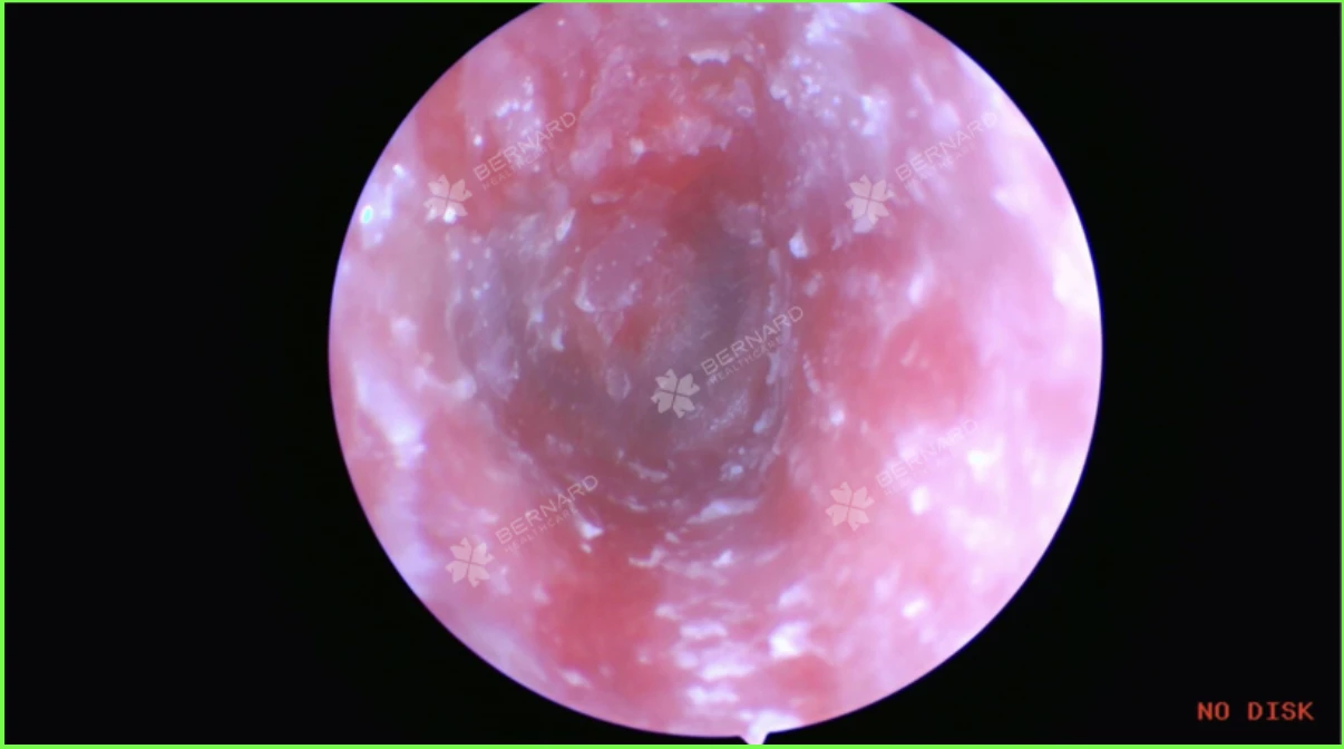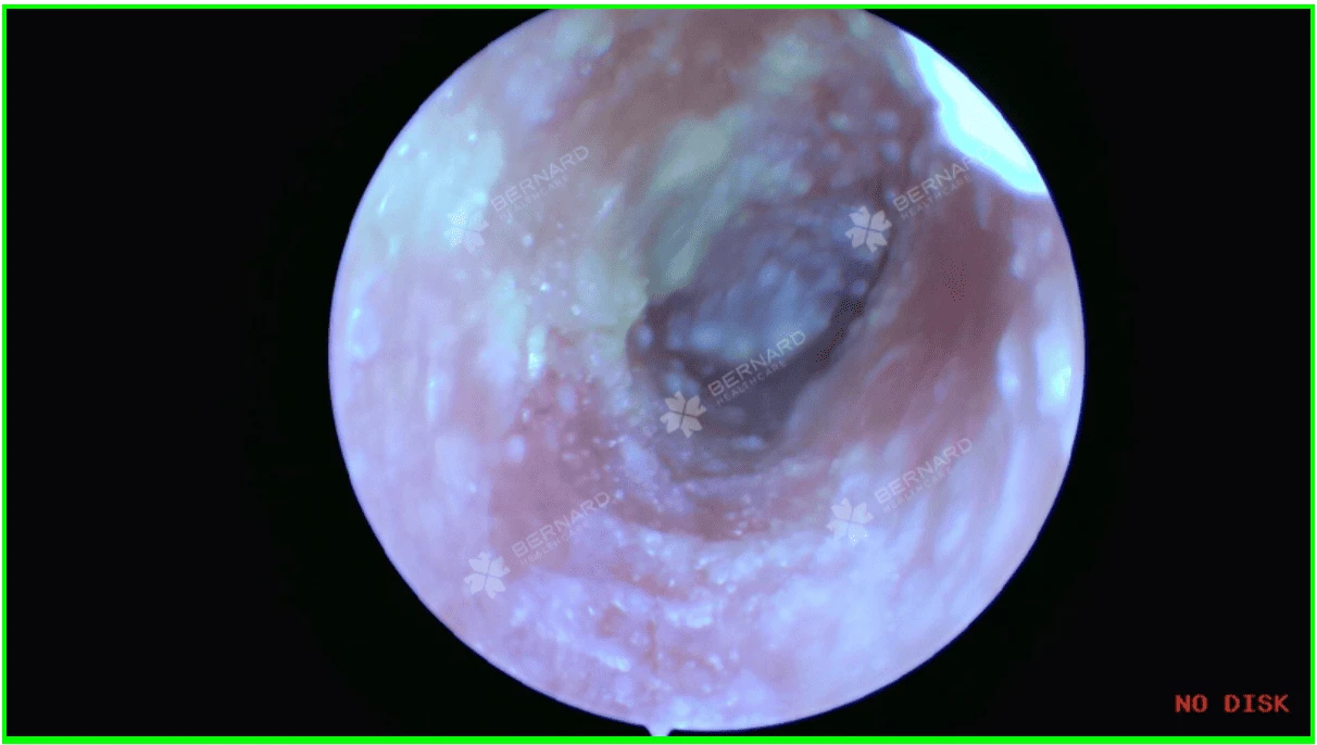 Nam khách hàng được Bác sĩ CKI. Trần Xuân Nguyên - Chuyên khoa Tai-Mũi-Họng, Bernard Healthcare trực tiếp thăm khám và chỉ định nội soi ống tai. Kết quả cho thấy, ống tai ngoài ở cả hai bên có tình trạng sung huyết, rải rác các mảng ráy tai kèm nấm. Màng nhĩ hai bên vẫn nguyên vẹn, tam giác sáng rõ, hòm nhĩ đóng ít mủ kèm nấm nhưng không đọng dịch.