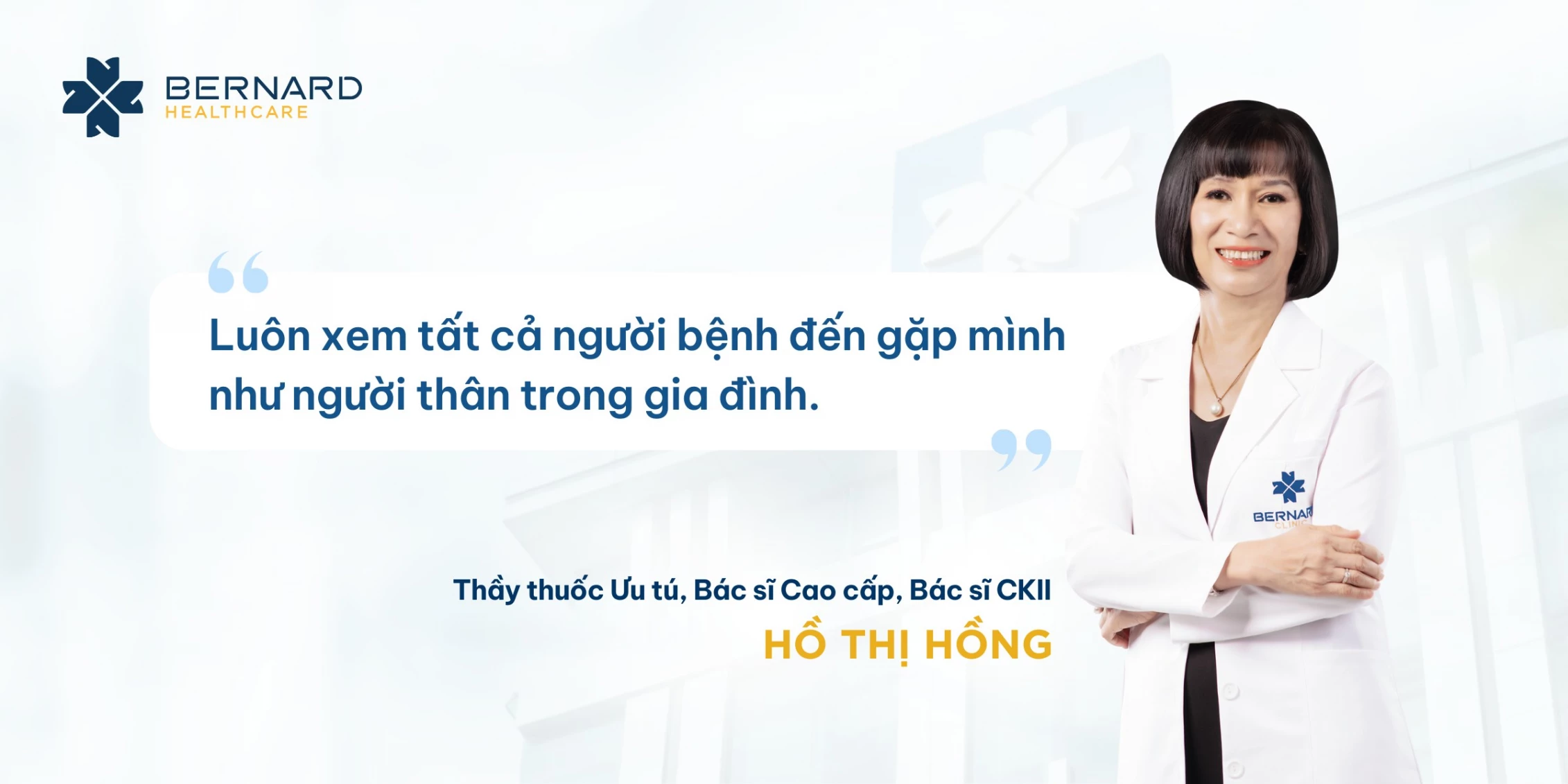 Với Bernard Healthcare, BS. Hồ Thị Hồng là biểu tượng của “y đức lâu bền – chuyên môn vững vàng – tinh thần Nhật Bản trong chăm sóc sức khỏe.” Với người bệnh, bà là một bác sĩ không nghỉ hưu, một người thầy trong thầm lặng, một “người gác cổng” cho hành trình sống khỏe từ sớm.