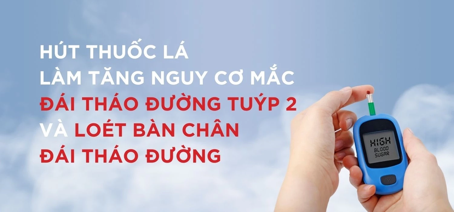 Người hút thuốc lá có nguy cơ mắc đái tháo đường tuýp 2 cao hơn 30% - 40% so với người không hút thuốc. Người hút thuốc lá càng nhiều, nguy cơ mắc đái tháo đường type 2 càng cao. Bệnh nhân đái tháo đường (bất kể tuýp nào) nếu hút thuốc lá đều sẽ kiểm soát đường huyết kém hơn so với người không hút thuốc. Đồng thời, người bệnh còn tăng nguy cơ bị các biến chứng của đái tháo đường như: xơ vữa động mạch, tăng huyết áp, tim mạch, gan nhiễm mỡ bệnh thận mạn, võng mạch mắt…