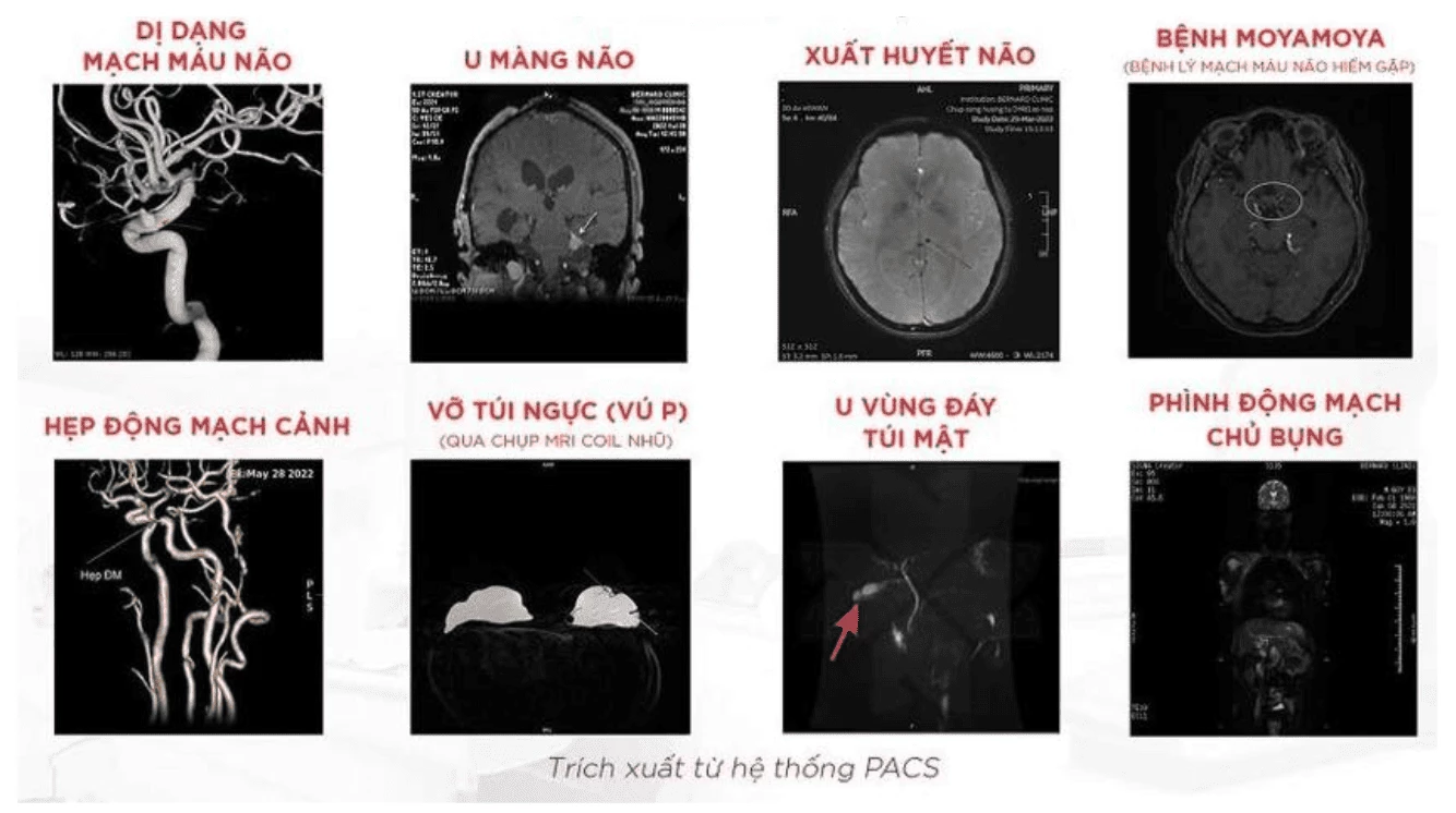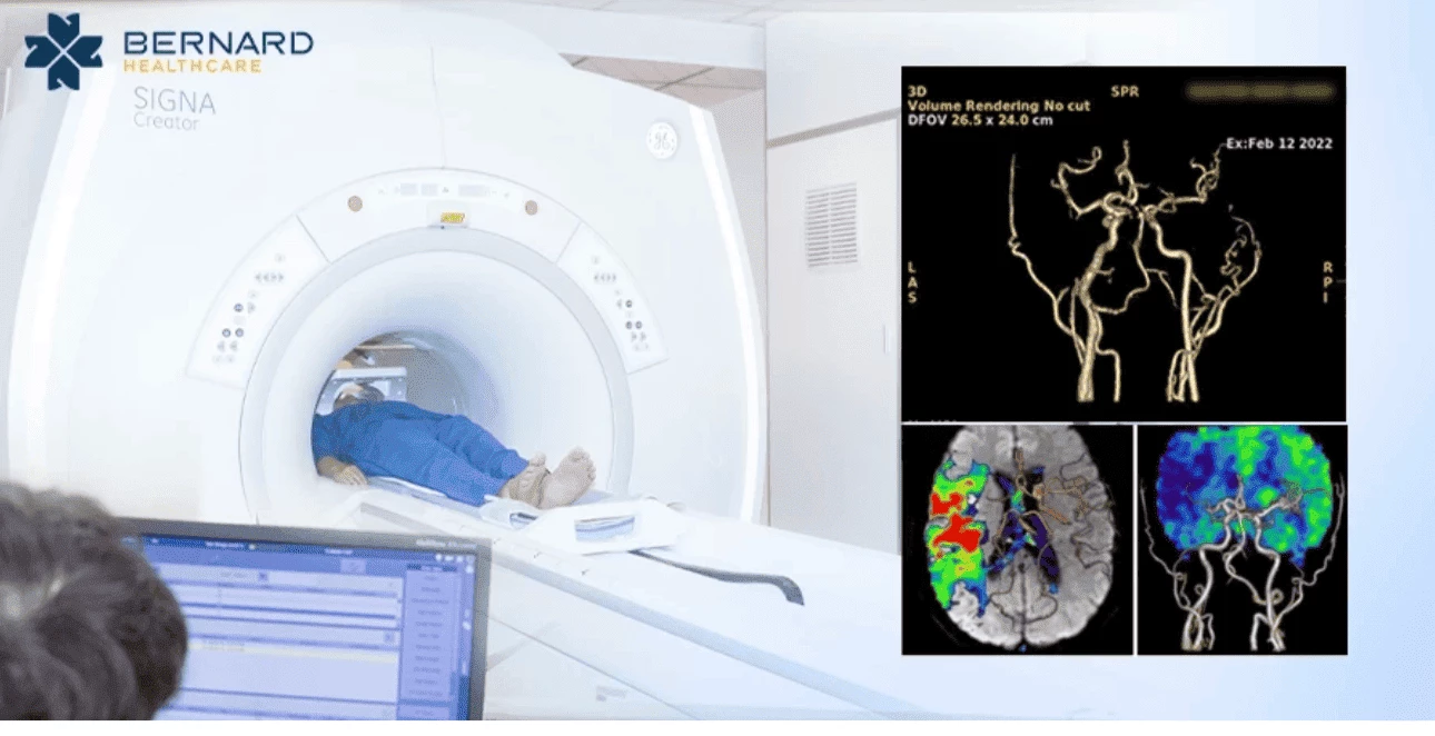 Chụp MRI não bộ, chụp MRI nhũ, chụp MRI toàn thânMRI với công nghệ dựng hình chuyên sâu AI PACs giúp các bác sĩ Bernard khảo sát mạch máu não, dựng hình 3D mạch máu não và đánh giá tưới máu não, từ đó truy tìm ra các yếu tố nguy cơ thầm lặng gây đột quỵ