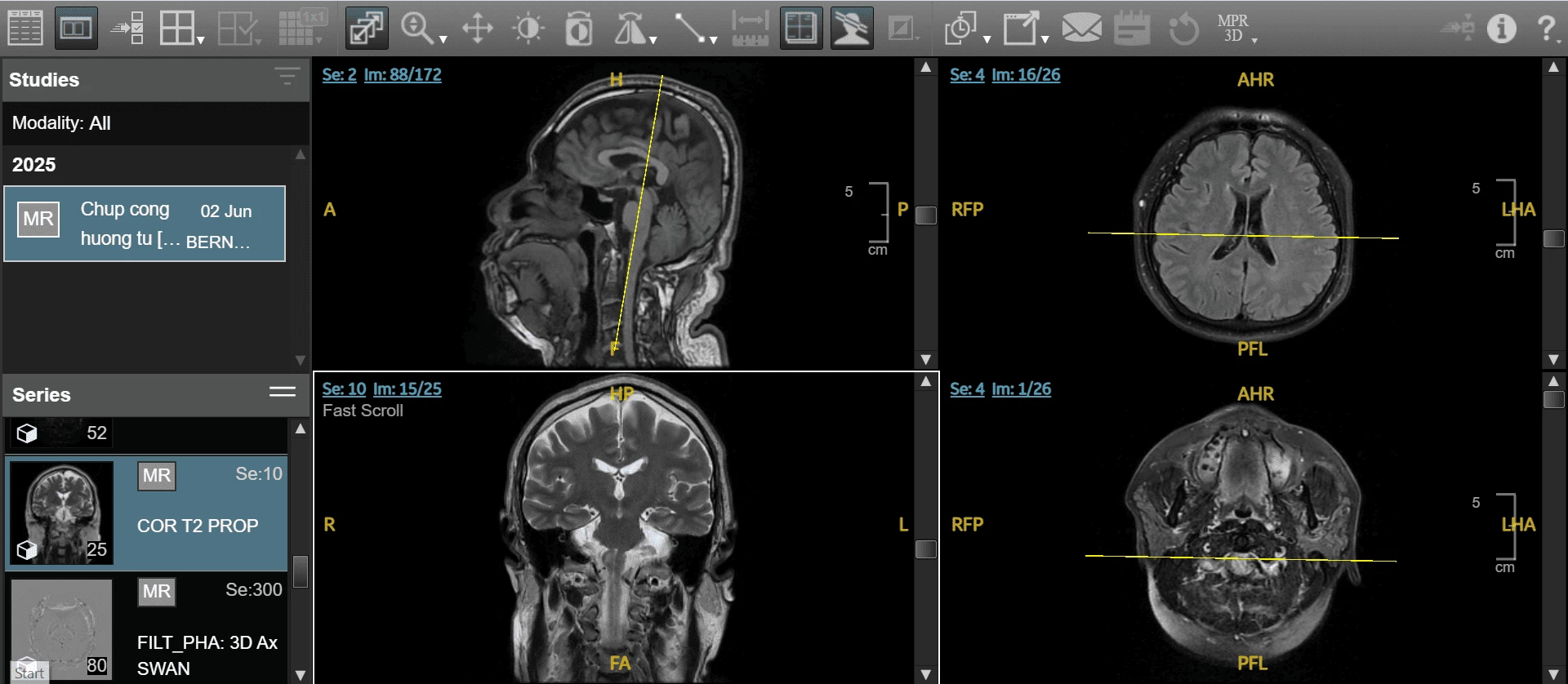 Thông qua giải pháp công nghệ y khoa đồng bộ, tích hợp trong một (HIS, AI PACS), các chuyên gia Nhật Bản sẽ truy cập vào hệ thống, đọc chéo kết quả MRI, CT thông qua ID (mã số) bệnh nhân Bernard đã cung cấp.