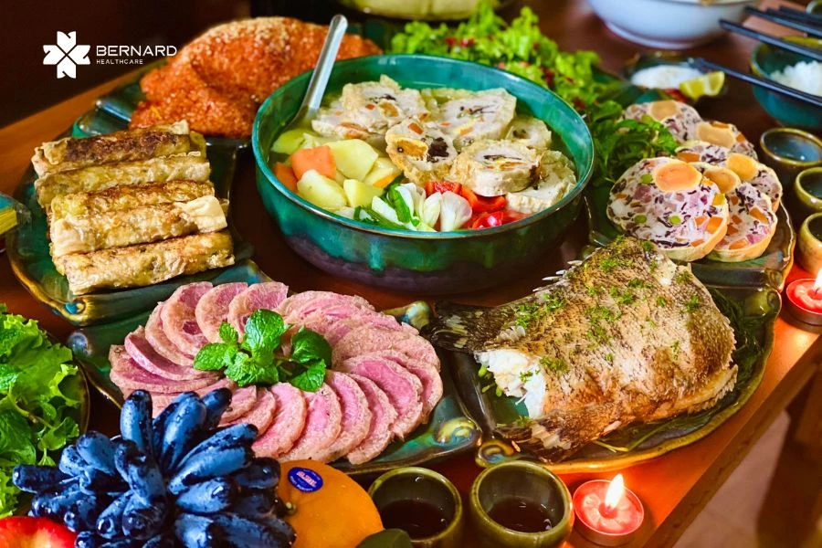 Mâm cỗ ngày Tết thường phong phú với nhiều món ăn truyền thống giàu muối, chất béo và đạm như món kho mặn, thực phẩm chế biến sẵn, dưa muối, đồ khô. Việc tiêu thụ quá nhiều muối có thể làm tăng giữ nước trong cơ thể, khiến huyết áp tăng cao. Đồng thời, lượng chất béo và năng lượng dư thừa cũng tạo áp lực lớn hơn cho tim và hệ mạch.