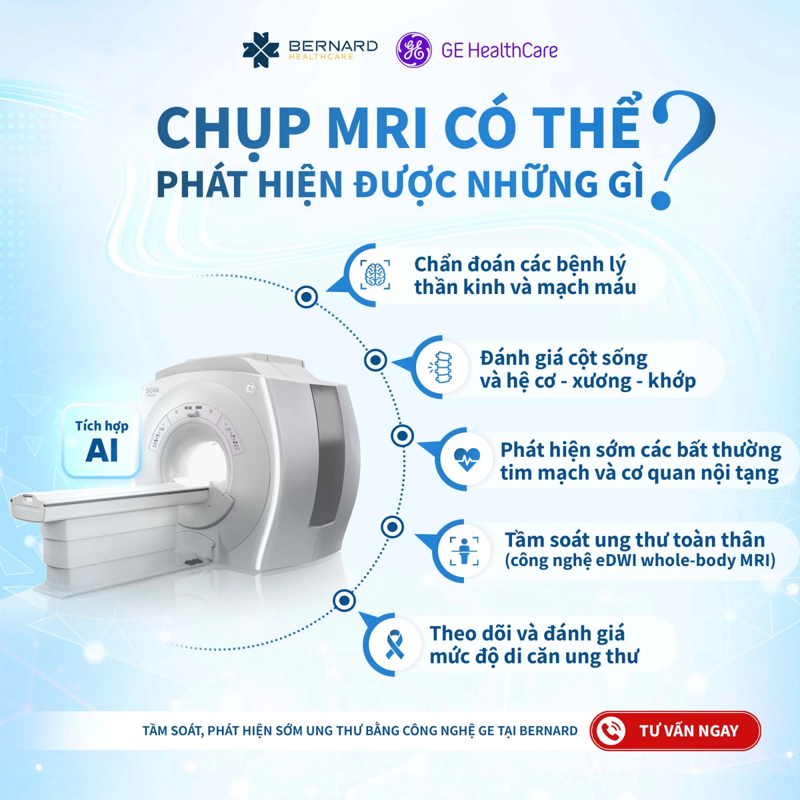 Trong khi đó, ở phạm vi toàn thân, MRI có khả năng phát hiện sớm tổn thương và nguy cơ tiềm ẩn trước khi bệnh biểu hiện ra bên ngoài. Qua đó, bác sĩ có thể đưa ra lời khuyên phòng ngừa và can thiệp sớm hơn, thay vì chỉ chờ đến khi bệnh tiến triển rõ rệt.