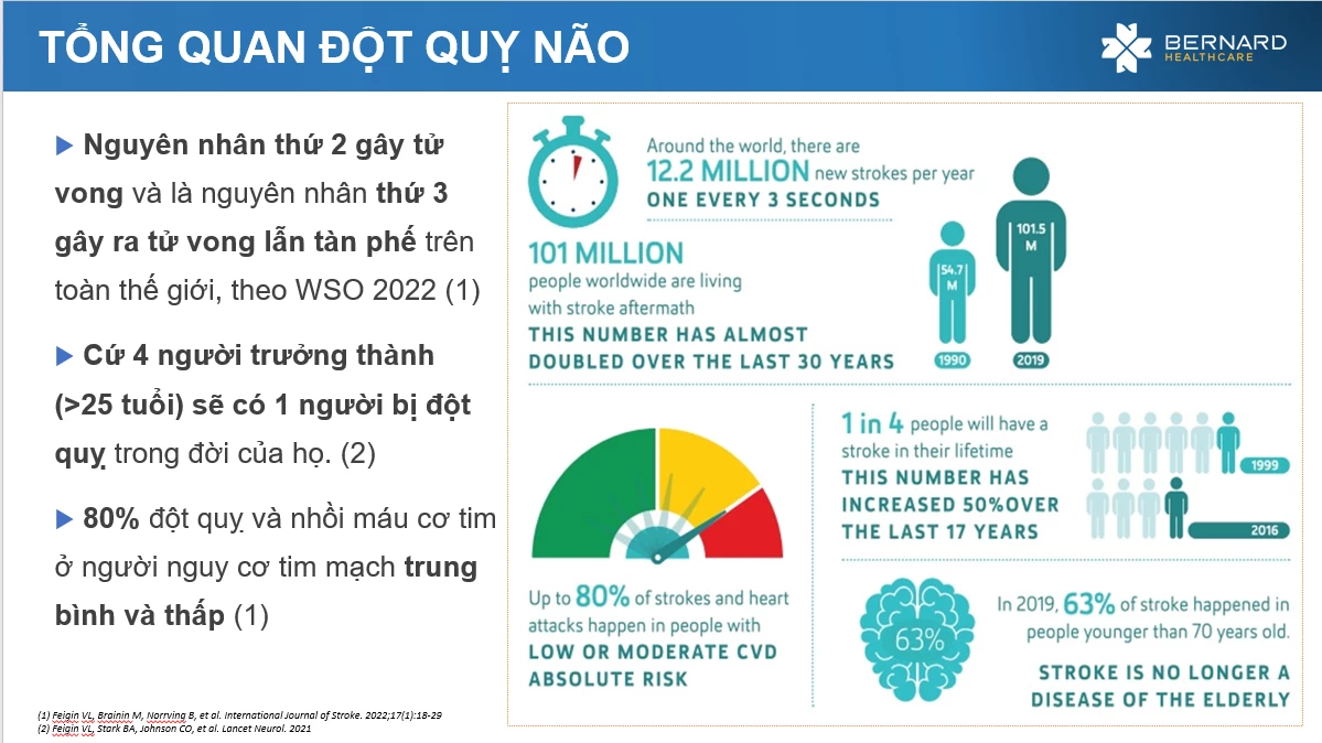 Theo thống kê từ Hiệp hội Đột quỵ Thế giới (WSO), cứ 4 người trưởng thành thì có 1 người có nguy cơ đối diện với đột quỵ. Điều đáng lo ngại, chỉ khoảng 30% bệnh nhân đột quỵ có thể hồi phục và trở lại cuộc sống bình thường. Phần lớn trường hợp sống sót phải đối mặt với di chứng nặng nề, ảnh hưởng đến vận động, nhận thức và chất lượng sống.
