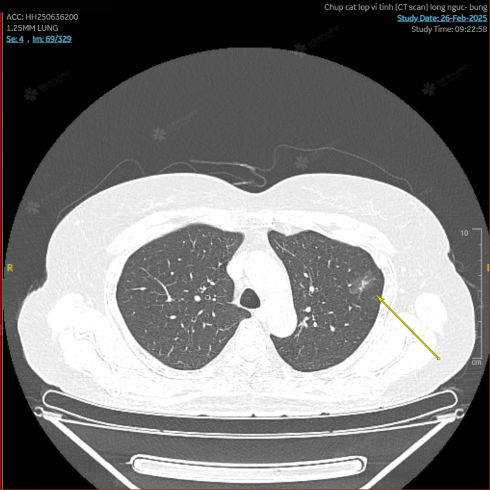 Với gói tầm soát Ningen Dock Bernard, chị D. được thực hiện đầy đủ các xét nghiệm máu chuyên sâu và kỹ thuật chẩn đoán hình ảnh tiên tiến. Trong đó có CT Scan - được xem là “tiêu chuẩn vàng” trong tầm soát, phát hiện sớm ung thư phổi.