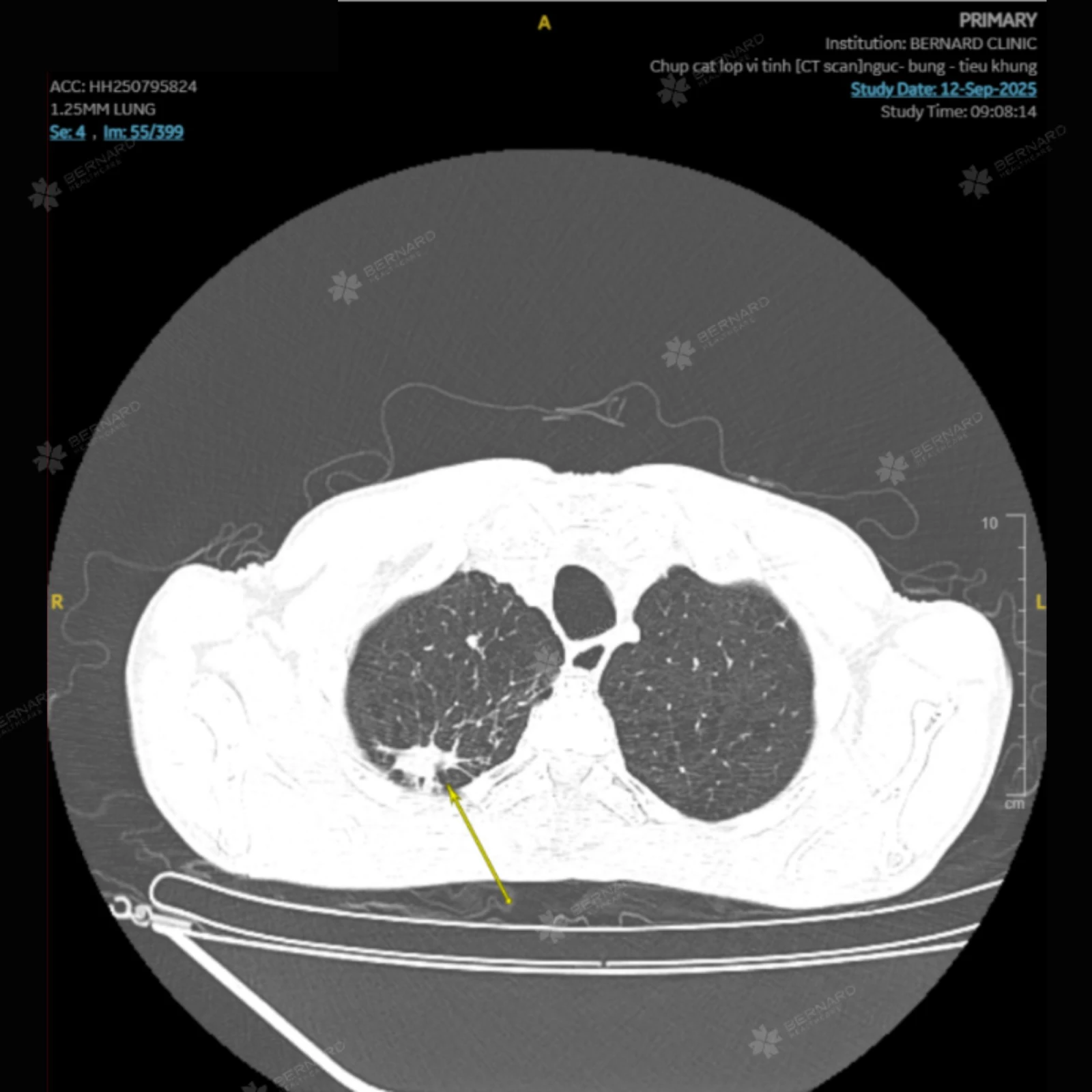 Khách hàng T.H.M. (71 tuổi) đến Bernard Healthcare thăm khám trong tình trạng sụt cân, ho đờm trắng kéo dài, mệt mỏi nhiều tháng và khó thở khi gắng sức. Trước đó, người bệnh từng sốt nhẹ về chiều, cảm giác nóng khan vùng cổ về đêm nhưng không đau ngực, không khó nằm đầu thấp.