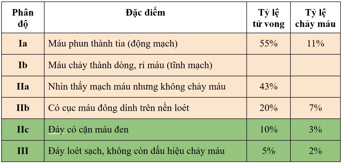Trong trường hợp của anh H. bên trên, tổn thương thuộc phân loại FORREST IIa, tương ứng với nguy cơ tái xuất huyết cao (40 - 50%).