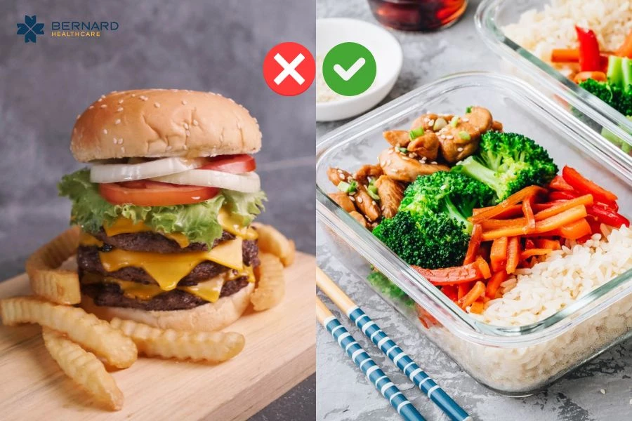 - Hạn chế các món chiên xào, nhiều dầu mỡ, nước sốt ngọt,... vừa dễ tăng cân, vừa làm rối loạn mỡ máu, tăng nguy cơ tim mạch đi kèm đái tháo đường