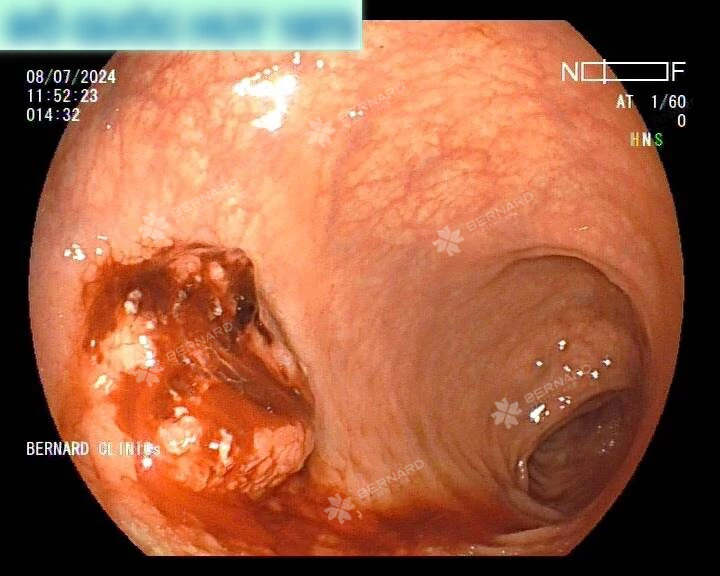 Ngay khi nhận thấy bất thường, BS CKII. Hồ Thị Hồng đã lập tức hội chẩn cùng Hội đồng Y khoa Bernard Healthcare và bác sĩ ngoại khoa, bác sĩ chẩn đoán hình ảnh. Từ các kết quả CT Scan và MRI, các bác sĩ Bernard nghi ngờ trường hợp của ông Q.H. là UNG THƯ ĐẠI TRÀNG. Bệnh nhân được chỉ định thực hiện nội soi đại tràng kết hợp sinh thiết để xác định chính xác bản chất của tổn thương.