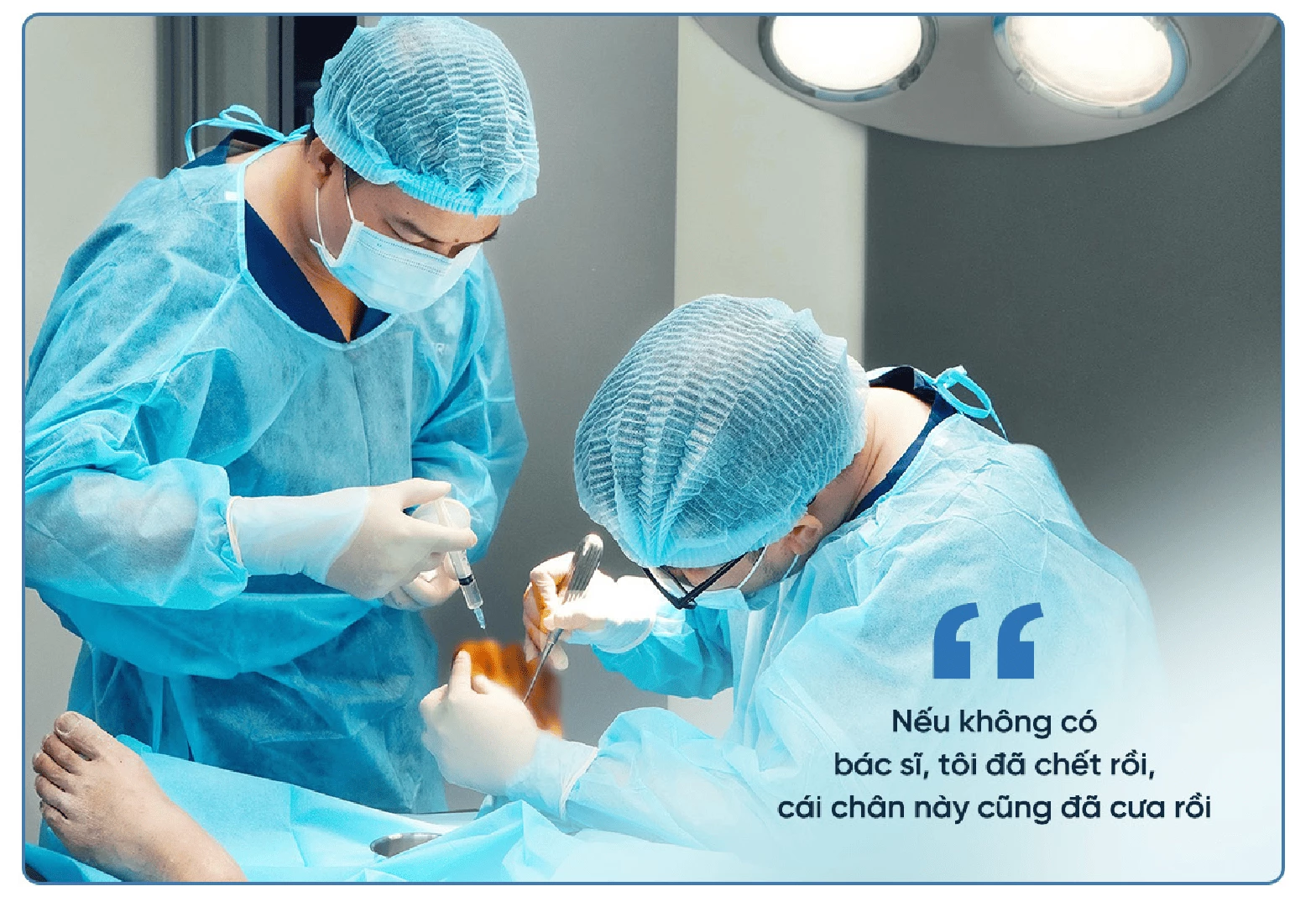 Bác sĩ Bernard sau khi khám tỉ mỉ, chỉ định các xét nghiệm, hội chẩn và thống nhất "có thể cứu chân cho bệnh nhân". Sau 3 tuần nỗ lực điều trị, vết thương lành dần, bà H. đã đi cà nhắc được.