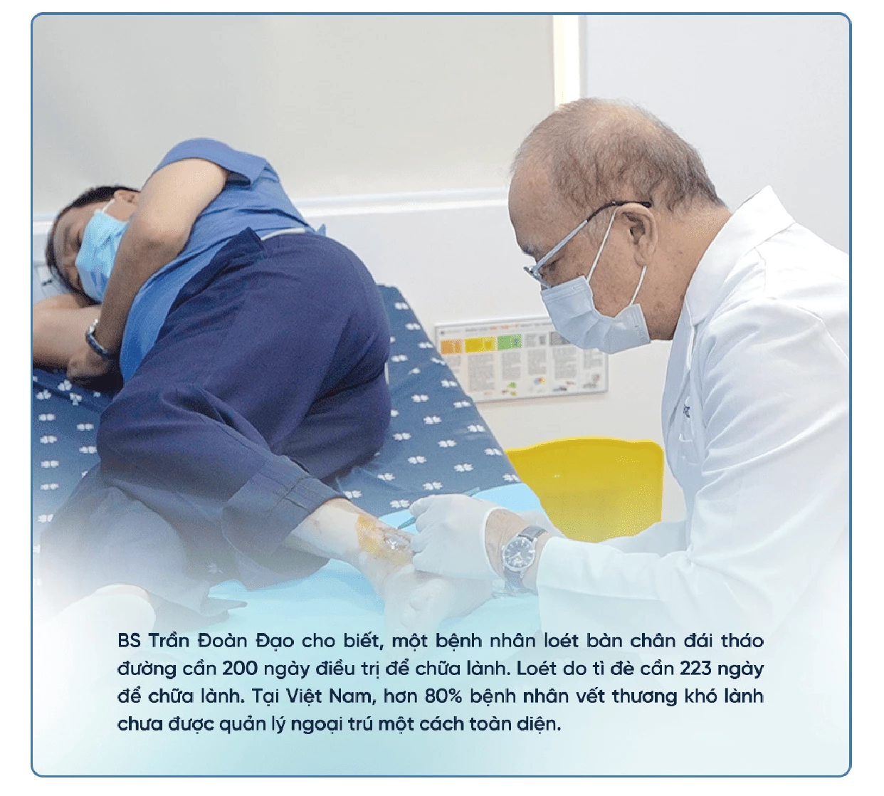 BS Trần Đoàn Đạo cho biết một bệnh nhân loét bàn chân đái tháo đường cần 200 ngày điều trị để chữa lành. Loét do tì đè cần 223 ngày để chữa lành. Tại Việt Nam, hơn 80% bệnh nhân vết thương khó lành chưa được quản lý ngoại trú một cách toàn diện.