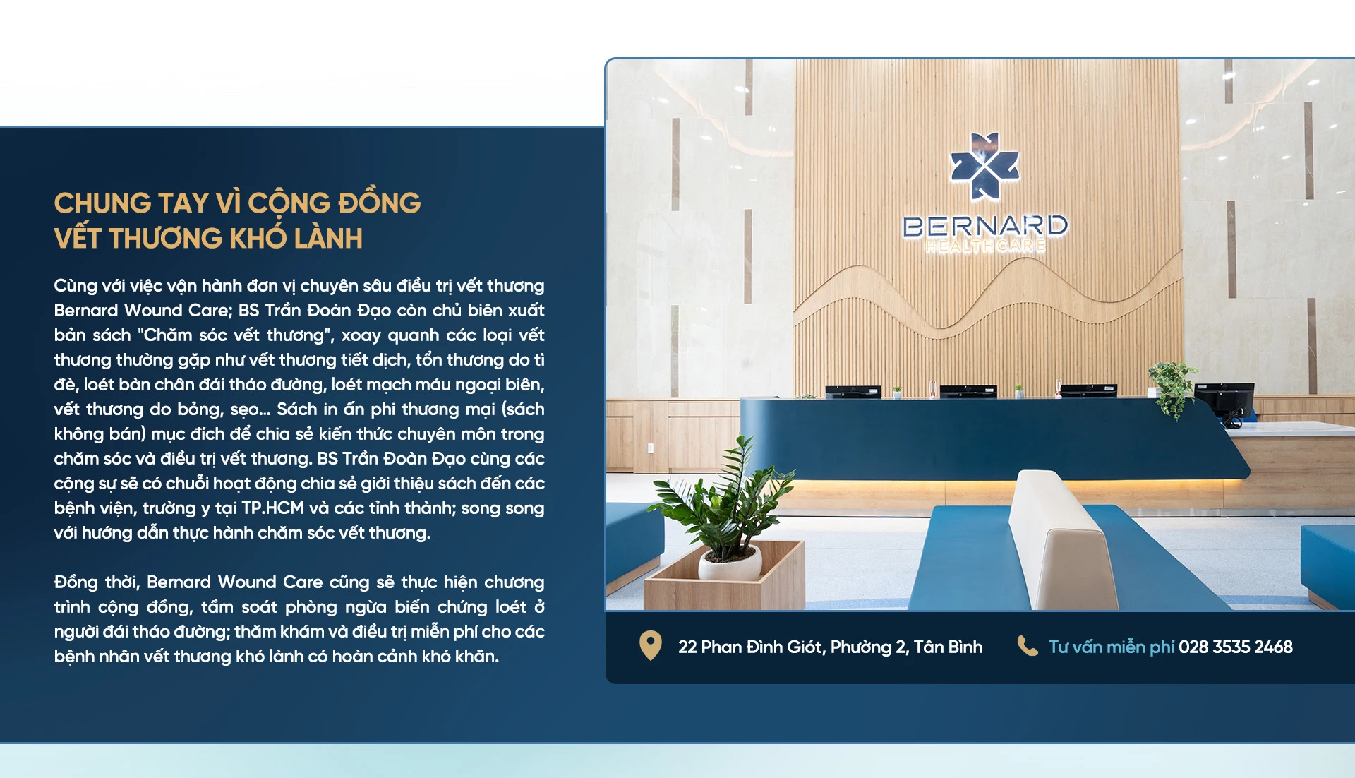 Mới đây, hệ thống Y khoa Chuyên sâu Quốc tế Bernard đã công bố quyết định thành lập Đơn vị điều trị chuyên sâu vết thương khó lành (Bernard Wound Care). Hiện nay, tại Việt Nam có rất ít cơ sở y tế điều trị các vết thương chuyên sâu.