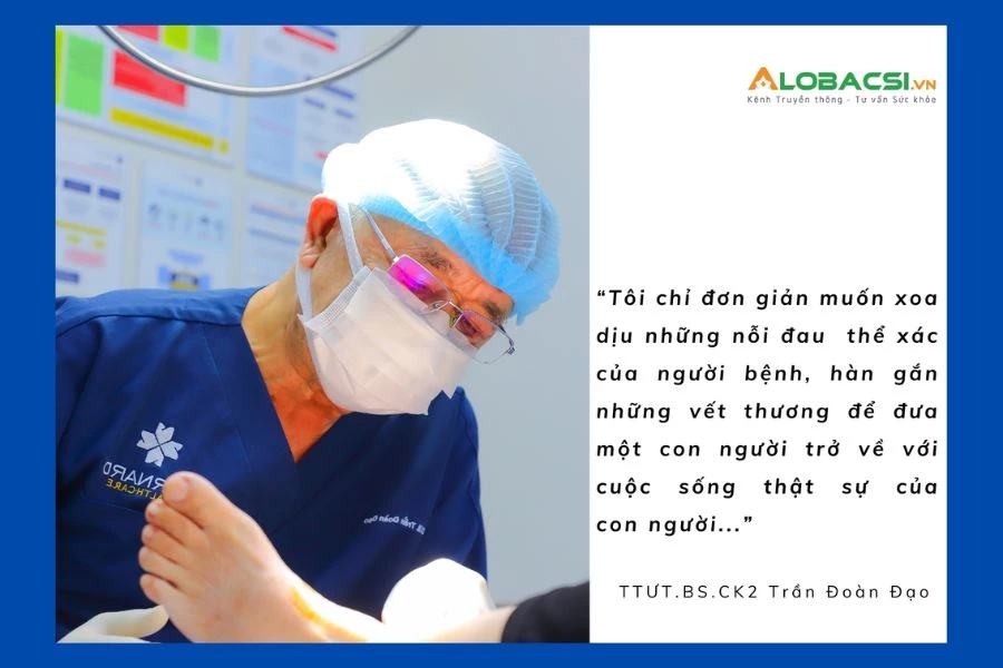 44 năm gắn bó với công việc này, BS.CK2 Trần Đoàn Đạo không còn xa lạ với mủ, máu, dịch tiết hay mùi thối như chuột chết từ những vết lở loét hoại tử - khiến người ta nhăn mặt buồn nôn - mà ông chỉ có một lòng thương, bởi họ đều là bệnh nặng nhà nghèo. Vì thương nên tiếp tục cầm dao kéo, chứ: “Ở tuổi này, tôi đi làm không phải để kiếm tiền”.