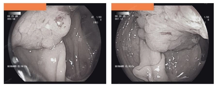 Kết quả nội soi đường tiêu hóa trên không ghi nhận bất thường nghiêm trọng. Tuy nhiên, khi khảo sát đại trực tràng, bác sĩ nội soi tại Bernard phát hiện một tổn thương đáng lo ngại tại đại tràng phải.
