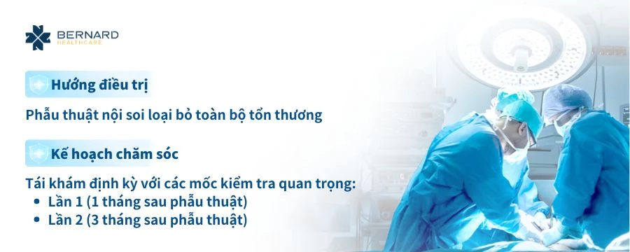 Sau khi cân nhắc kỹ lưỡng, phương án điều trị được thống nhất là phẫu thuật nội soi loại bỏ toàn bộ tổn thương, được thực hiện trực tiếp bởi TS.BS. Võ Nguyên Phong tại bệnh viện chuyên khoa.